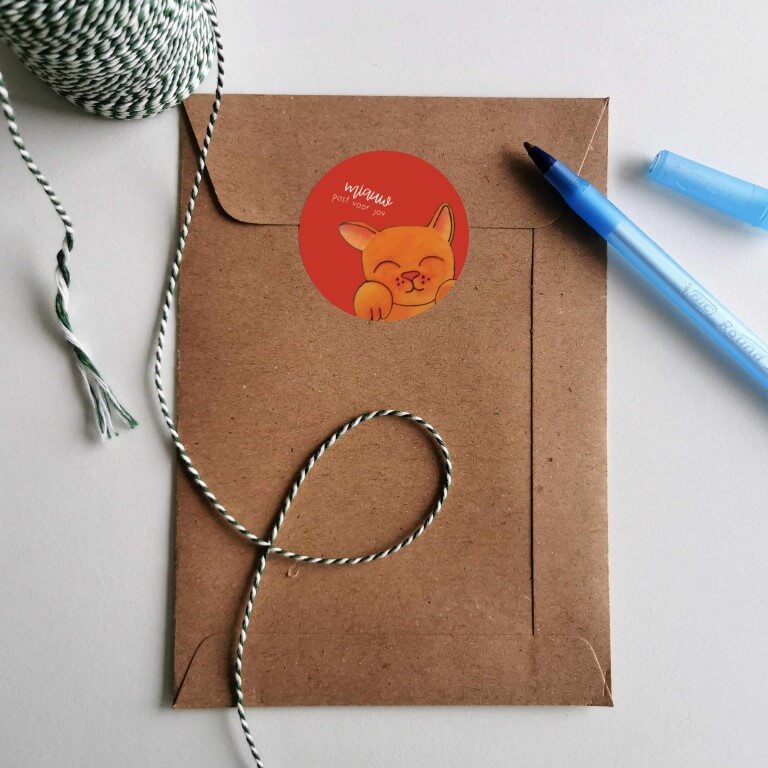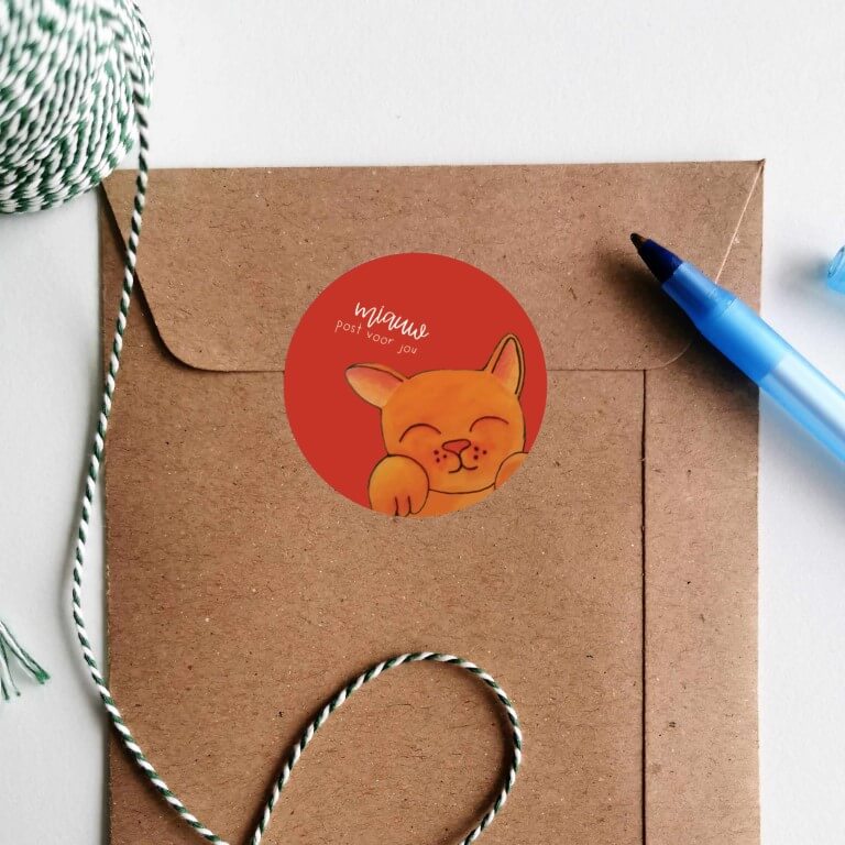 Originele sluitstickers! Leuk om de envelop mee dicht te plakken of een cadeautje mee te versieren. Er staat ‘Miauw post voor jou’ op deze variant.