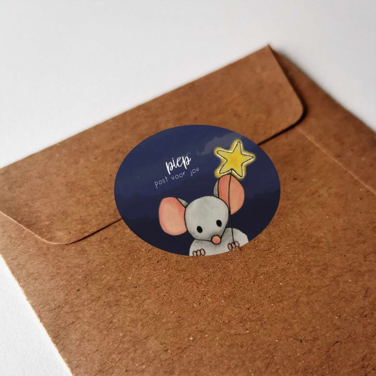Originele sluitstickers! Leuk om de envelop mee dicht te plakken of een (kerst)cadeautje mee te versieren. Er staat ‘Piep post voor jou’ op deze variant.