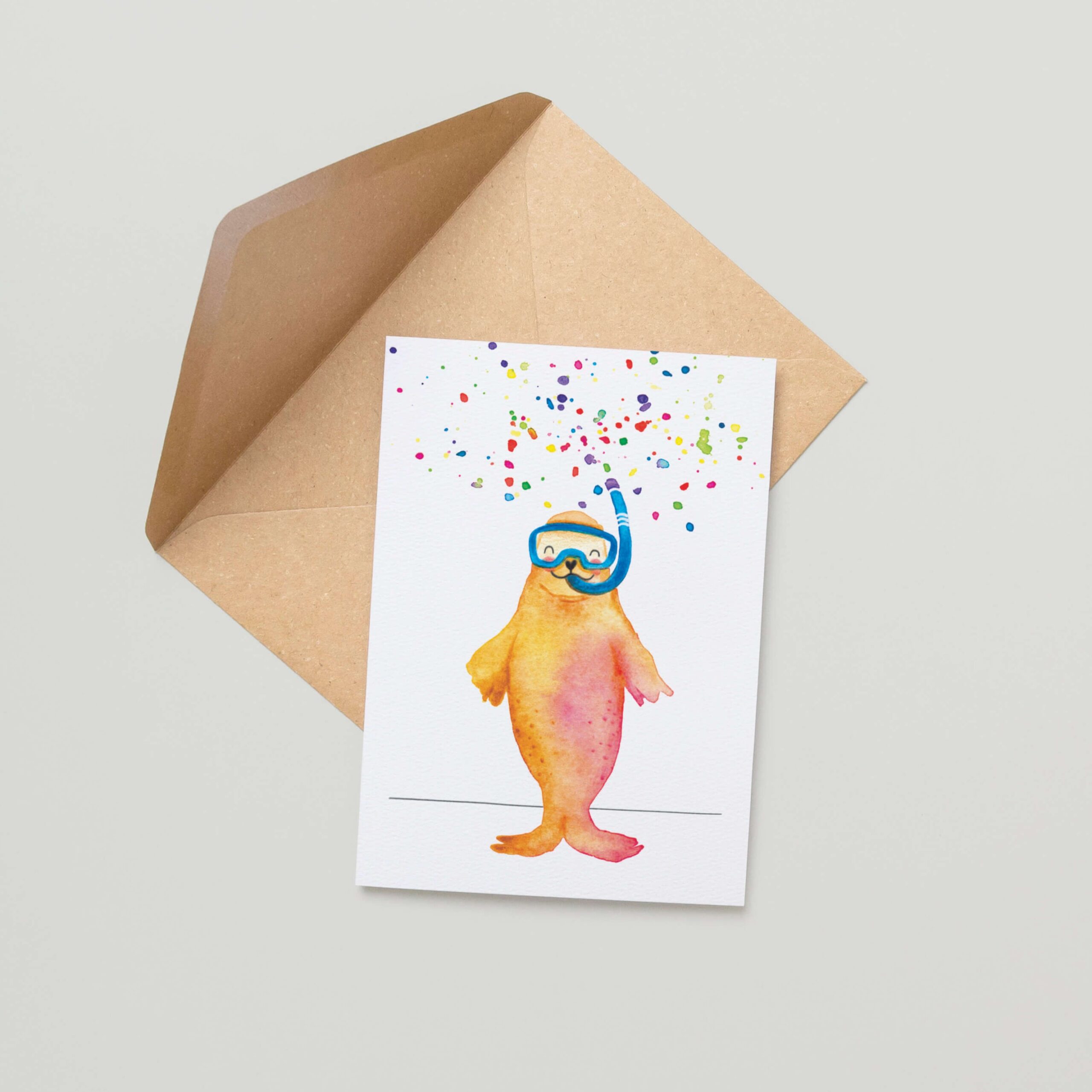 Wil je een kleurrijke en vrolijke verjaardagskaart sturen? Op deze feestelijke verjaardagskaart vliegt de confetti in de rondte. Want zonder confetti geen verjaardag! De zeehond heeft zin in een feestje en is er helemaal klaar voor.