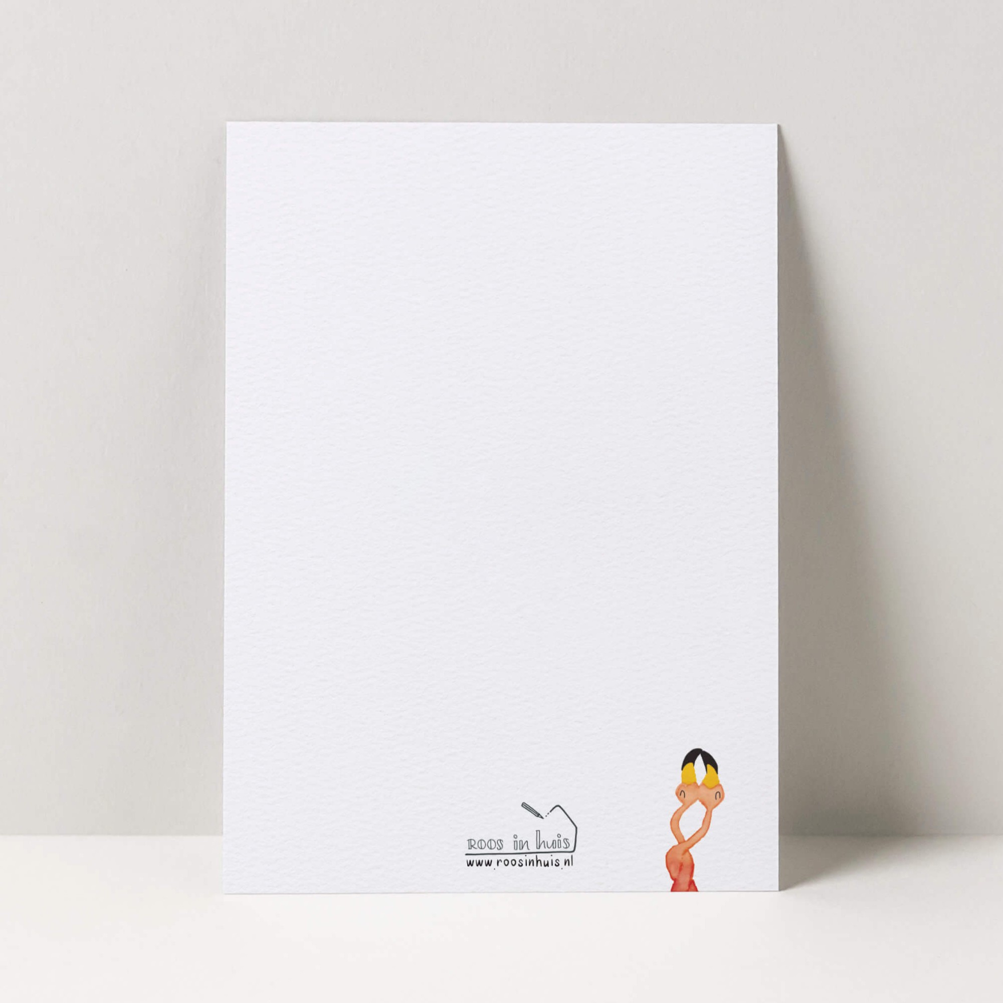 Liefde kan soms zo sierlijk zijn. Deze wenskaart toont twee verliefde flamingo’s die met hun elegante halzen zijn vervlochten. Een speels tafereel vol zachtheid, kleur en verbinding. De roze tinten en sierlijke lijnen brengen de liefde op een speelse én stijlvolle manier tot leven.